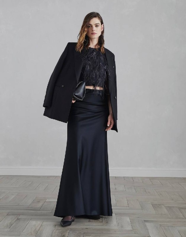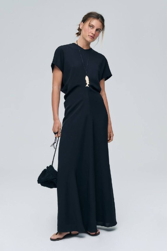 Красиво, тяжело ниспадает, подчёркивая достоинства силуэта