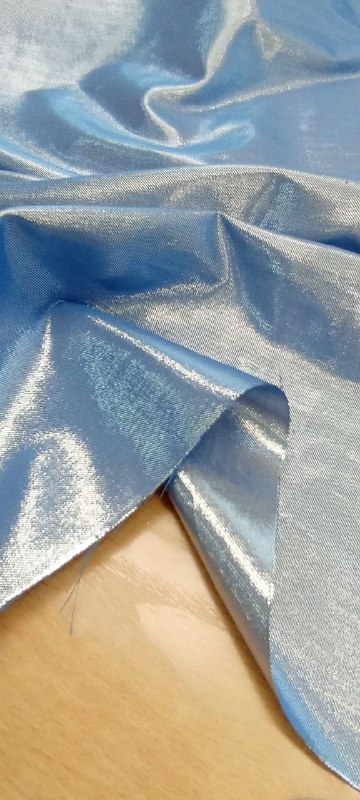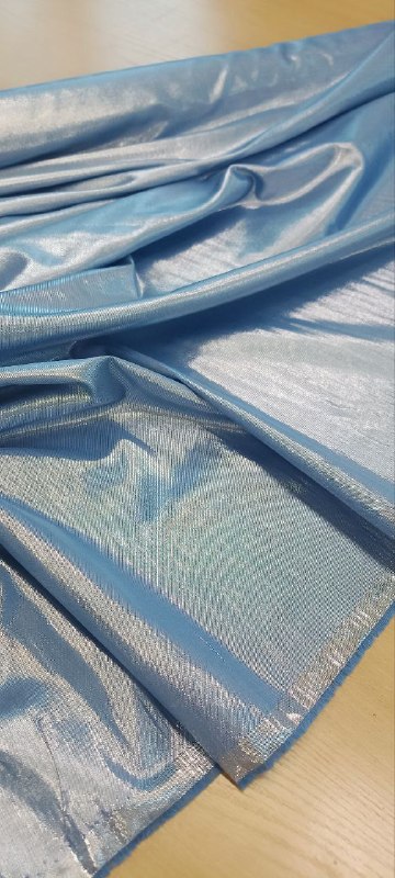 Эффектная ткань голубого цвета с серебристым металлизированным блеском Пластичная, тактильно очень приятная.