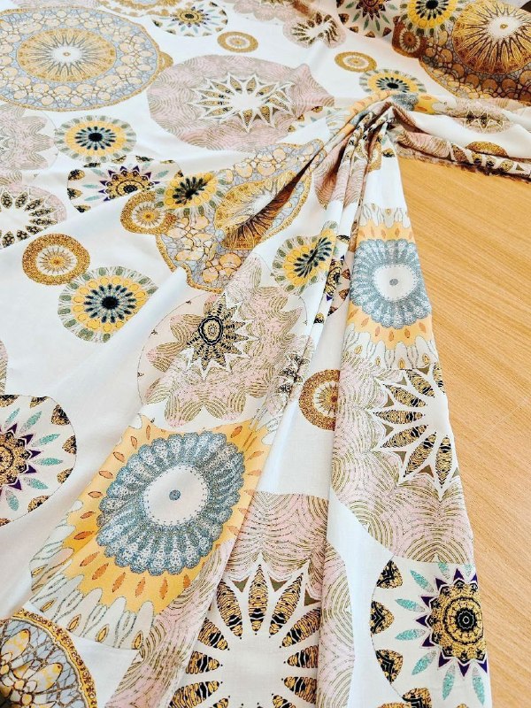 ВИСКОЗА пр. Италия Арт 5512 Шир 145 см 100% вискоза Цена 1850 рм Штапельная вискоза, в этническом стиле Отличное качество. Струящаяся, не просвечивает Подойдёт для платья, туники, юбки, блузы, сарафана