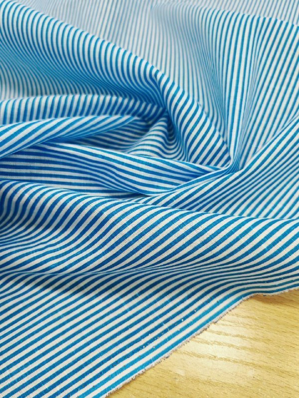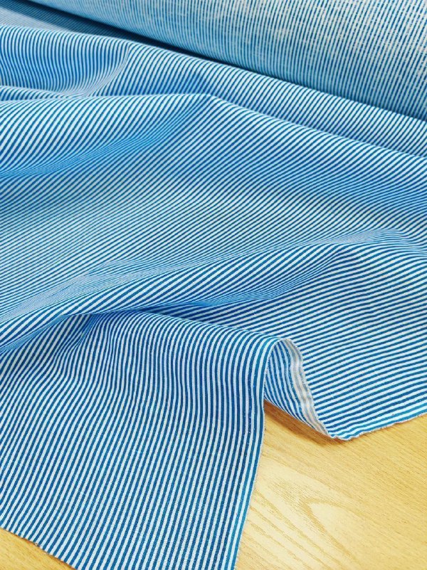 ЛЁН, пр. Италия Арт 5617 Шир 148 см 100% Лён Цена 2250 рм Эффектный лён в яркую мелкую вертикальную полоску, сине голубого цвета Настроение для летнего дня ! Для сарафана, рубашки, шорт, брюк и тд...