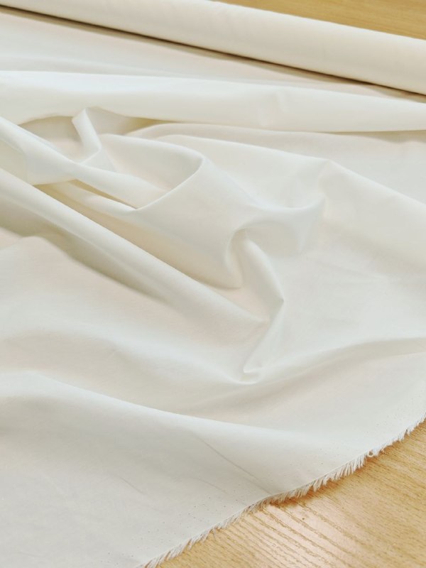 ХЛОПОК сорочечный, поплин пр. Италия Арт 5672 Шир 146 см 100% хлопок Цена 1350 рм Цвет-молочный. Практически не просвечивает, слегка держит форму Шикарно для рубашки, сарафана, платья или комплекта с шортами.