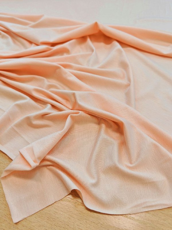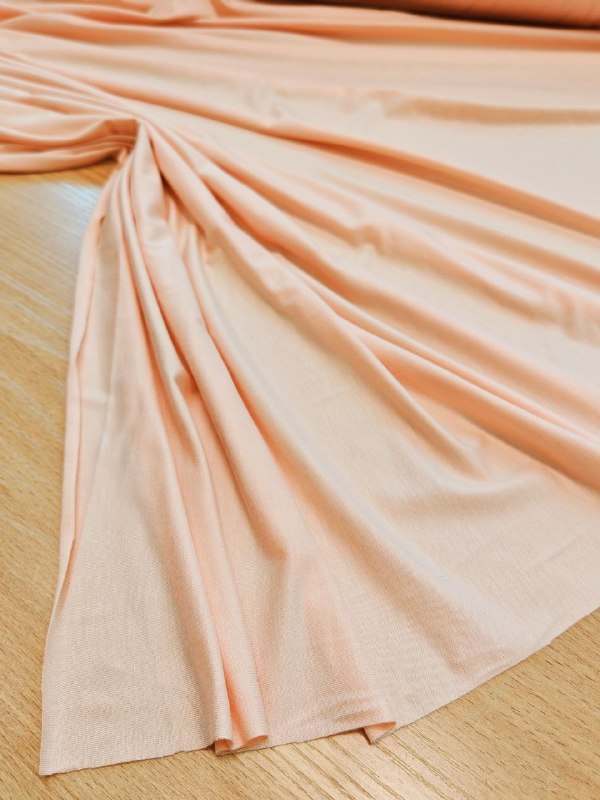 ТРИКОТАЖ пр. Италия Арт 5685 Шир 145 см 95% вискоза,5% эластан Цена 1450 рм Шелковистый трикотаж персикового цвета Для лёгких летних, плечевых изделий