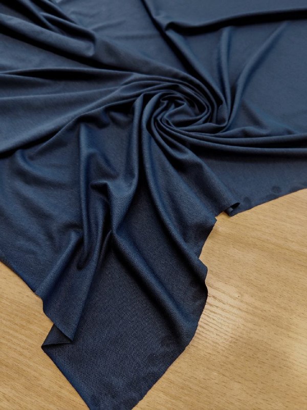 ТРИКОТАЖ пр. Италия Арт 5871 Шир 182 см 95% вискоза,5% эластан Цена 1510 рм Шелковистый вискозный трикотаж синего цвета Для лёгких летних, плечевых изделий