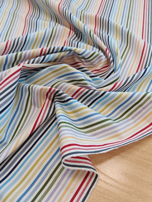 ХЛОПОК, поплин от CANCLINI пр. Италия Арт 5948 Шир 151 см 100% хлопок Цена 1750 рм Качество - бомба Лощеный, глянцевый, сорочечный хлопок. Полоска вертикальная Шикарно для рубашки, сарафана, платья, или комплекта с шортами. Не просвечивает
