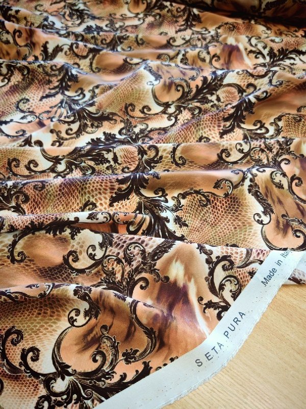 КРЕПДЕШИН, от ETRO пр. Италия Арт 6090 Шир 136 см 100 % натуральный шёлк, Цена 4790 рм Эффектный и благородный принт в оттенках кофе и шоколада.. Отличное качество Пластичный, струящийся и абсолютно не мнётся Для топа, блузы или платья...