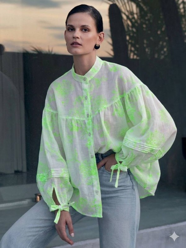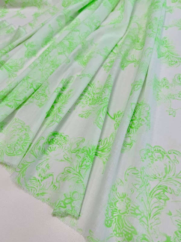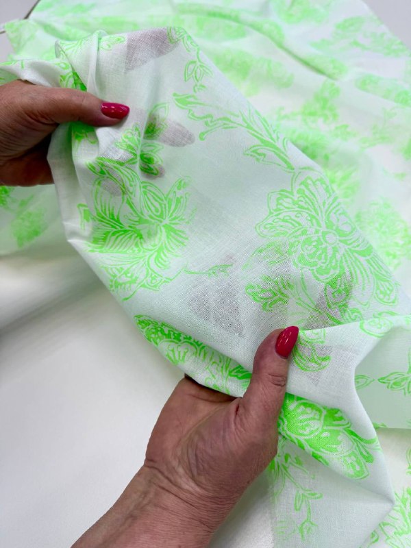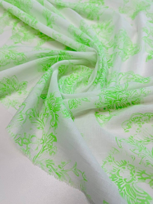 БАТИСТ пр. Италия Арт 6264 Шир 140 см 100% хлопок Цена 1750 рм Замечательный, лёгкий, мягкий батист с САЛАТОВЫМ флуоресцентный принтом Идеальная ткань для невесомых блуз, топов, рубашек или туник, прекрасно для жаркого лета