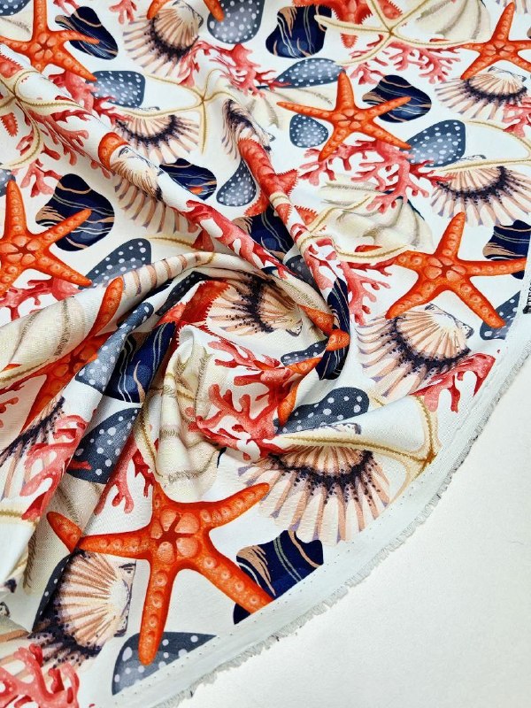 Эффектный принт морские звезды и раковины так и зовут к морю...