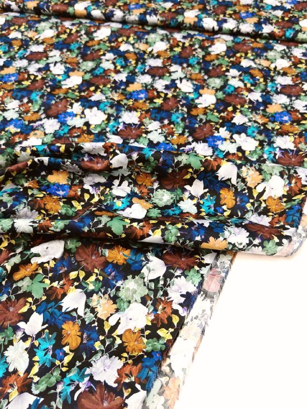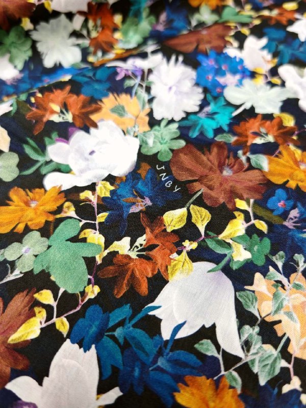 ХЛОПОК от GNBY пр. Италия Арт 6410 Шир 127 см 100% хлопок Плотность 77 гр/ м кв Цена 2350 рм Футуристические цветы на сине черном фоне.. Шикарное качество Для эффектной сорочки, блузы, платья. Качество премиальное