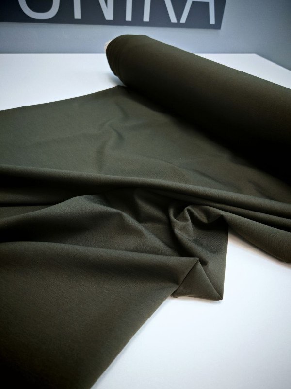 ДЖЕРСИ, (Пунто милано) пр. Италия Арт 6651 Шир 157 см 65% вискоза, 29% пэ, 6% эластан Плотность 520 г/ м кв. Цена 2350 рм Цвет - тёмный зелёный Шелковистое, упругое и пластичное ДЖЕРСИ. Для свитшота, жакета, брюк, юбки или целого костюма