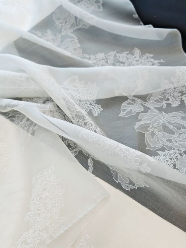 Шикарная шёлковая органза с рисунком изысканными цветами