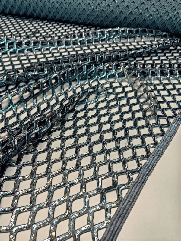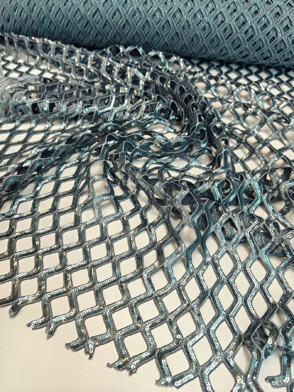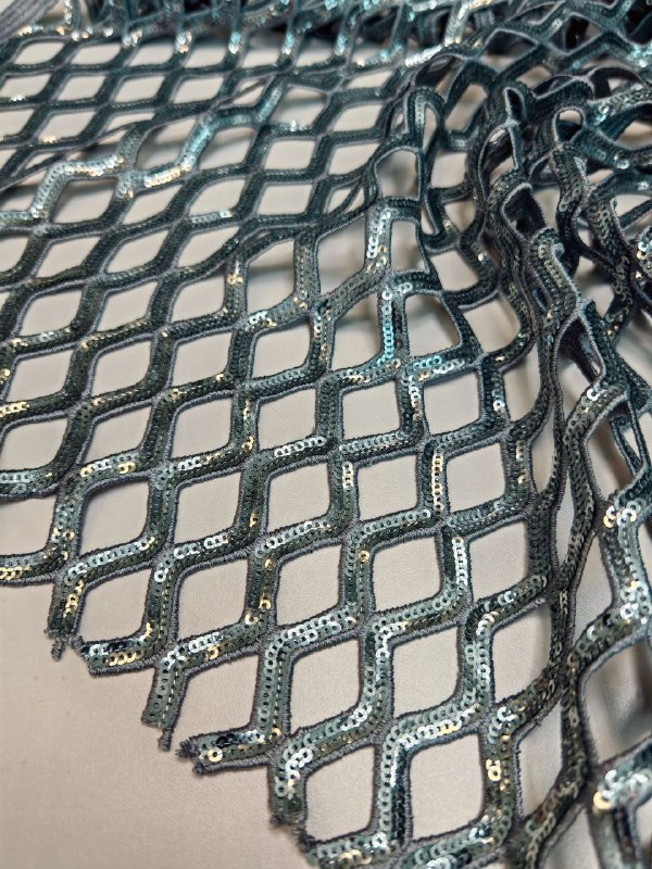 Сетка макраме с вышивкой пайетками