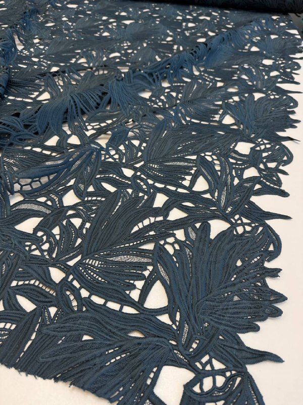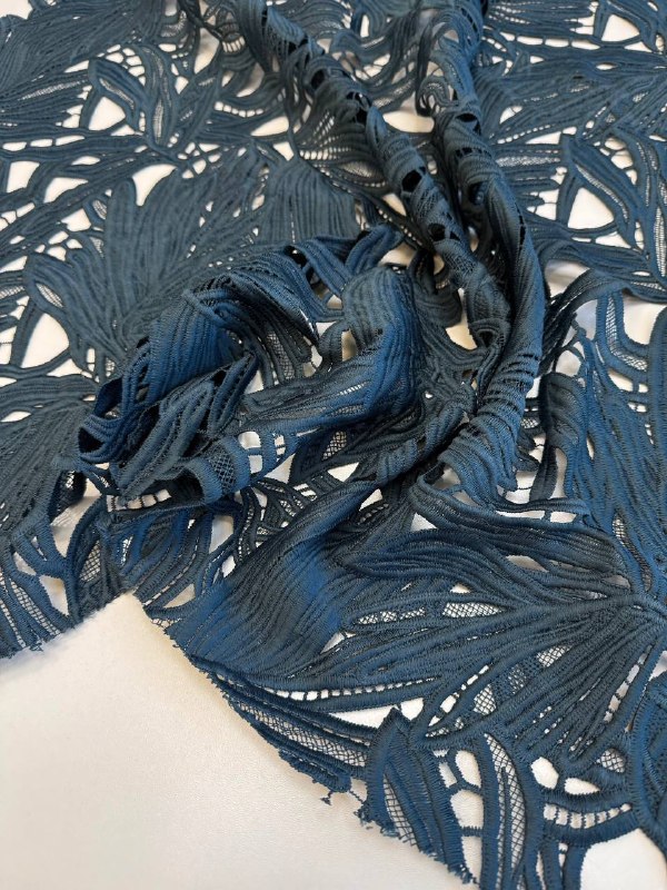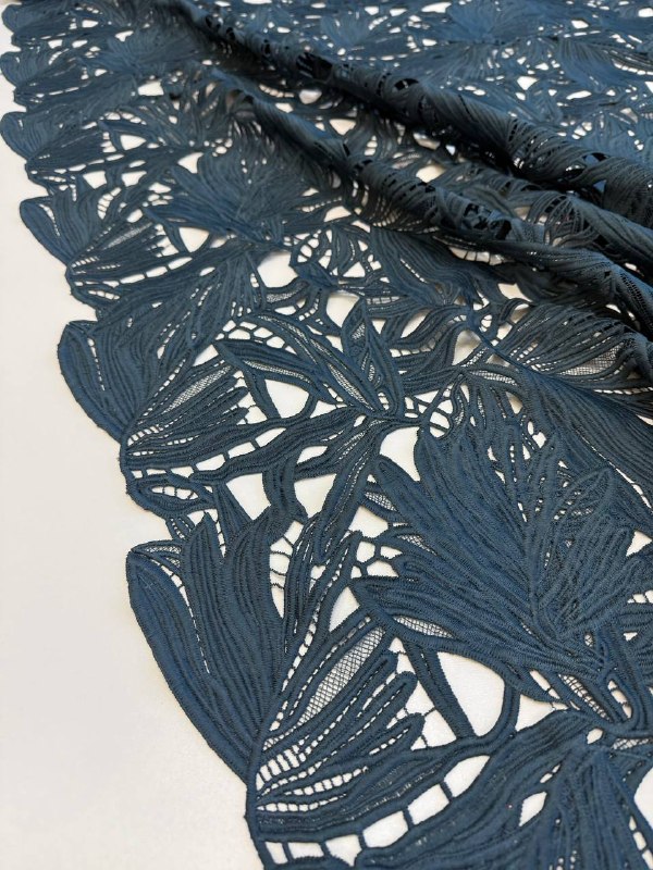 КРУЖЕВО Ришелье пр. Италия Арт 6909 Шир 123 см 100% п/э Цена 3960 рм Цвет - СИЗЫЙ Удивительное фактурное кружево с крупными листьями Фестон с двух сторон, поперечный крой Подойдет для юбки, топа, платья