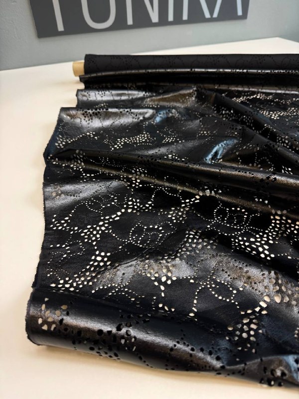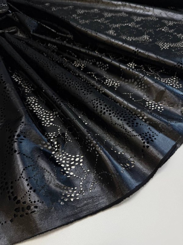Эффектная экокожа с лаковым отливом и красивой перфорацией розами - легкая и мягкая, пластичная, отлично драпируется