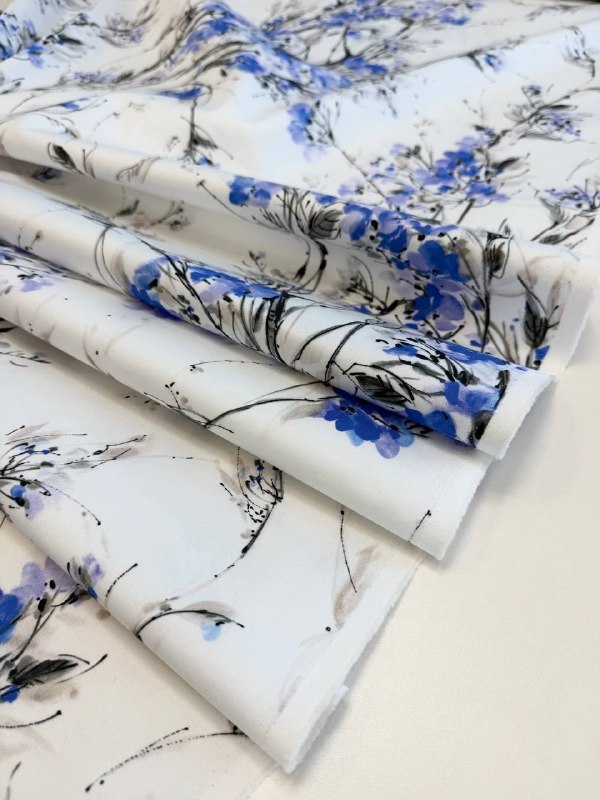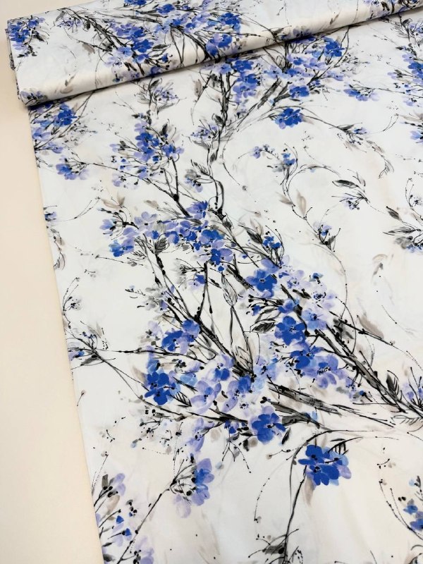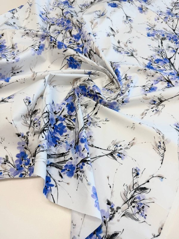 Плательно-костюмный эластичный хлопок в нежным принтом