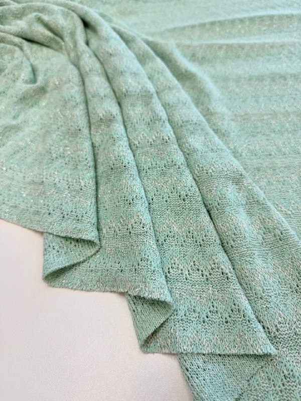 ТРИКОТАЖ От MISSONI пр. Италия Арт 7092 Шир 160 см 85% хлопок 9 % пэ 3% па 3% люрекс Цена 3650 рм Цвет - МЯТНЫЙ Коллекционный сток Лёгкий трикотаж, Мягкий, растяжимый, не просвечивает. Для лёгкого платья, лонгслива, топа или целого комплекта