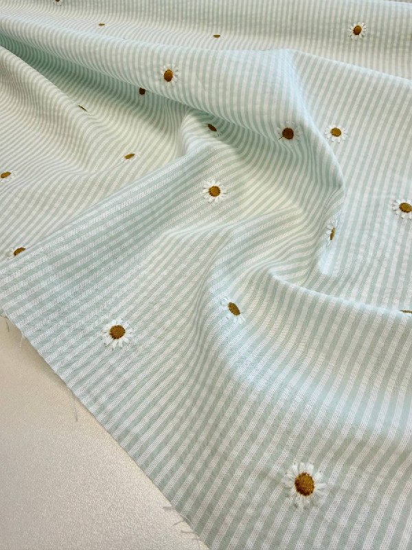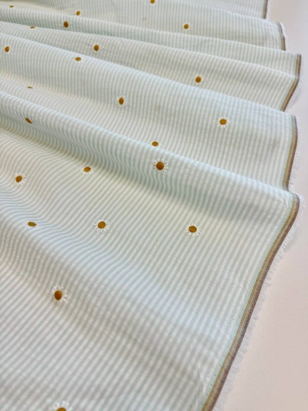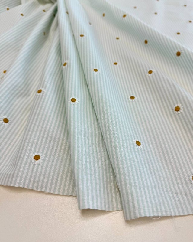 Модный прием в этом году - вышивка на полоске - хлопок с легким эффектом сираскера и деликатной вышивкой ромашками