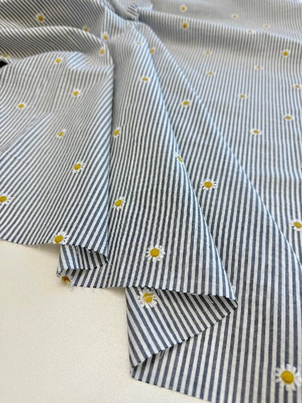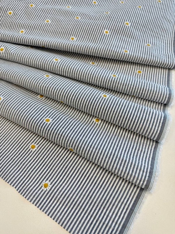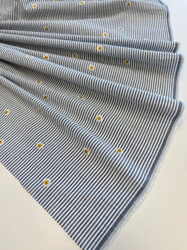 Модный прием в этом году - вышивка на полоске - хлопок с легким эффектом сирсакера и деликатной вышивкой ромашками
