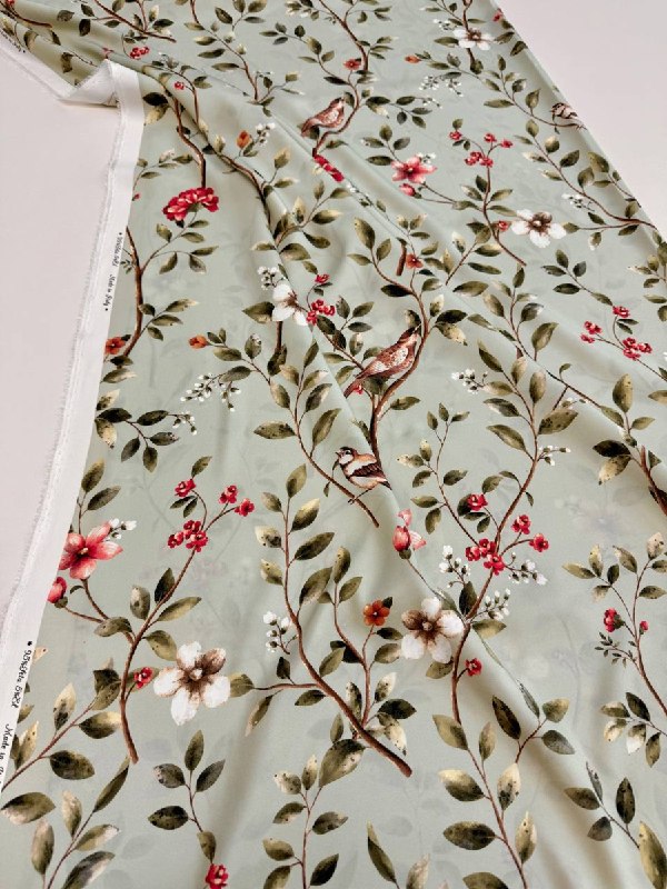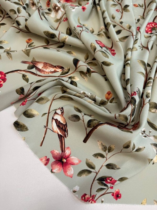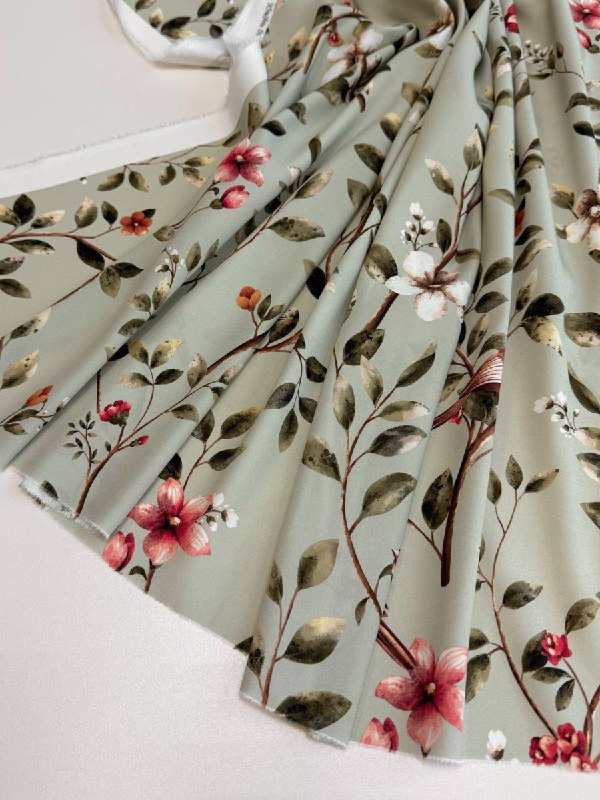 Нежный растительный орнамент на шелке (печать на матовой стороне, изнаночная - атласная - тактильно очень приятно)