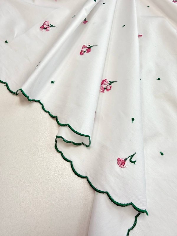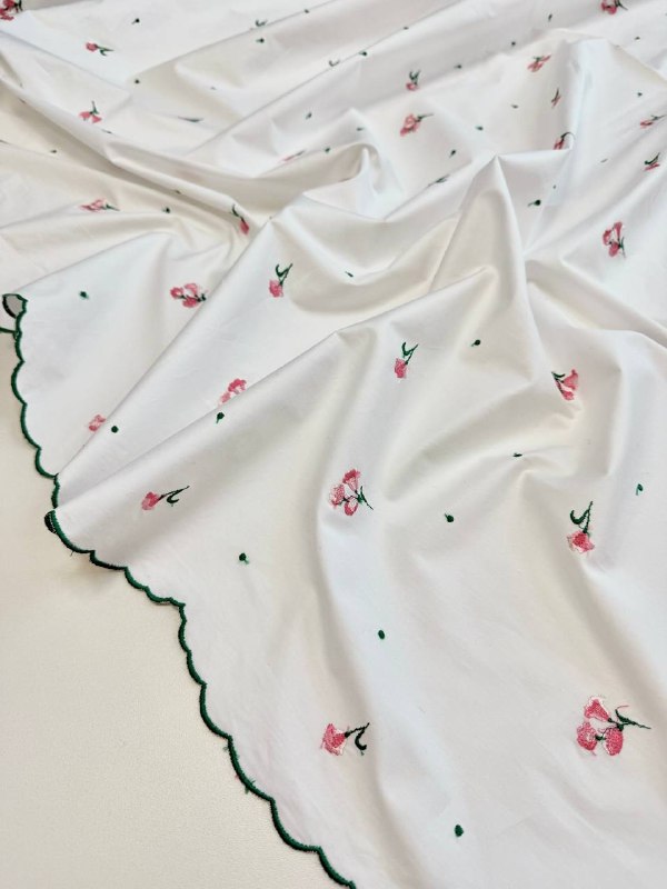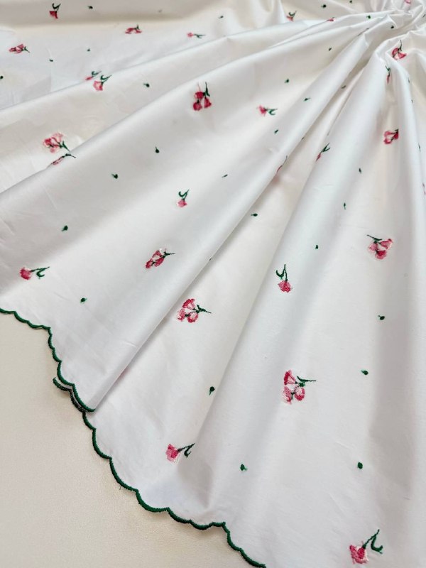 Чудесный качественный хлопок с нежной романтичной вышивкой и каймой по краю