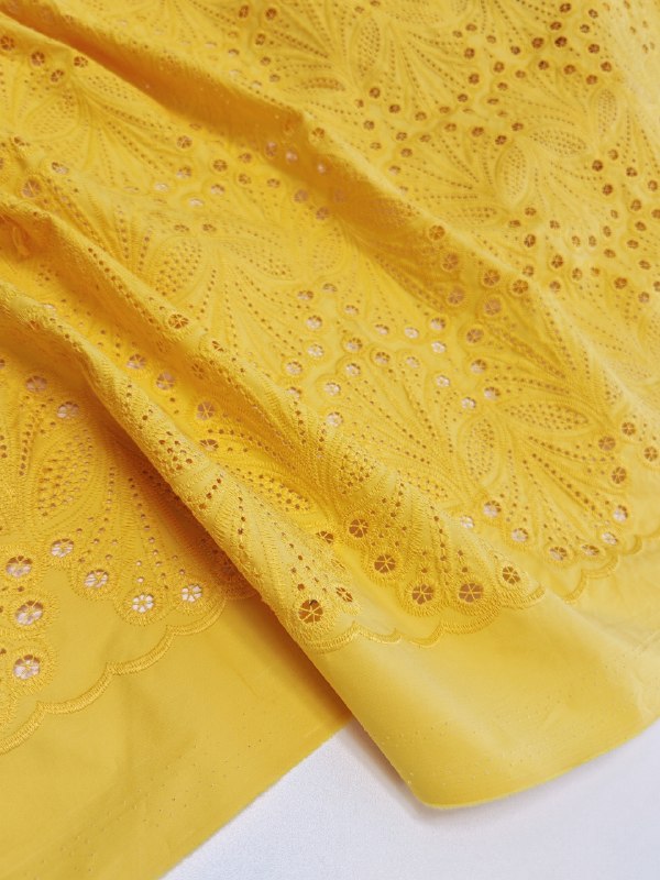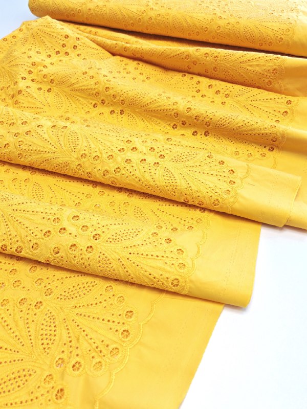 Роскошное, эксклюзивное хлопковое шитье на поплине, насыщенного жёлтого солнечного тёплого цвета