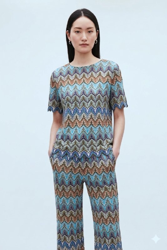 ТРИКОТАЖ От MISSONI пр. Италия Арт 7187 Шир 151 см 81% хлопок 19 % пэ Цена 3230 рм Коллекционный сток Лёгкий трикотаж, Мягкий, растяжимый, не просвечивает. Рисунок расположен по долевой. Для лёгкого платья, блузы, топа или целого комплекта