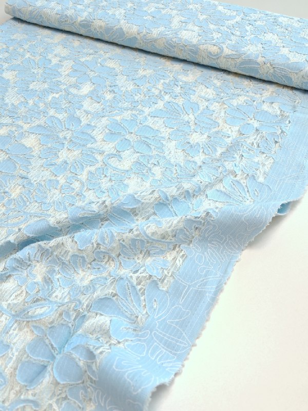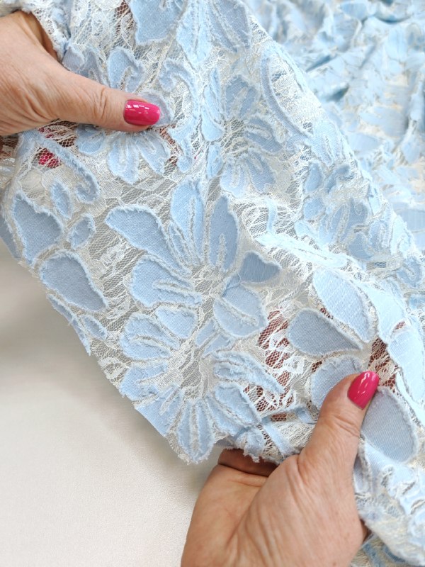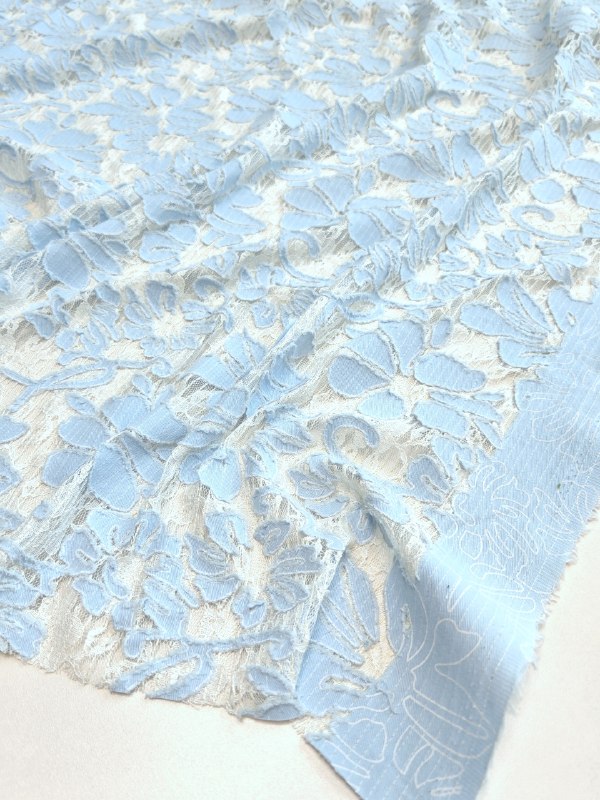 ВЫШИВКА - АППЛИКАЦИЯ НА КРУЖЕВЕ пр. Италия Арт 7191 Шир 145 см 65% хлопок, 35% пэ Цена 4350 рм Эффектная фантазийная вышивка аппликация денимом по кружеву.. Мягкая, нежная ткань, красиво ниспадает. Для ценителей нестандартных полотен Сшейте сарафан, платье, рубашку, тунику, юбку или даже комплект со свободными брюками
