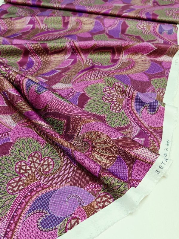 НАТУРАЛЬНЫЙ ШЁЛК От ETRO Арт 6591 Шир 136 см 100% натуральный шёлк Цена 5100 рм Роскошный шёлковый твил в малиновый оттенках Пластичный, текучий Для роскошной блузы, юбки, топа или платья