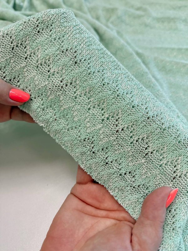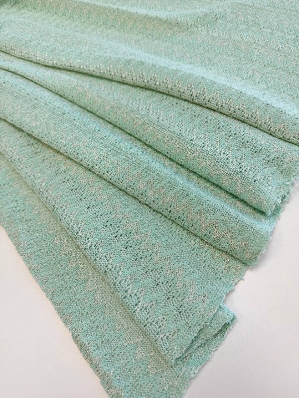 ТРИКОТАЖ От MISSONI пр. Италия Арт 7092 Шир 160 см 85% хлопок 9 % пэ 3% па 3% люрекс Цена 3650 рм Цвет - МЯТНЫЙ Коллекционный сток Лёгкий трикотаж, Мягкий, растяжимый, не просвечивает. Для лёгкого платья, лонгслива, топа или целого комплекта